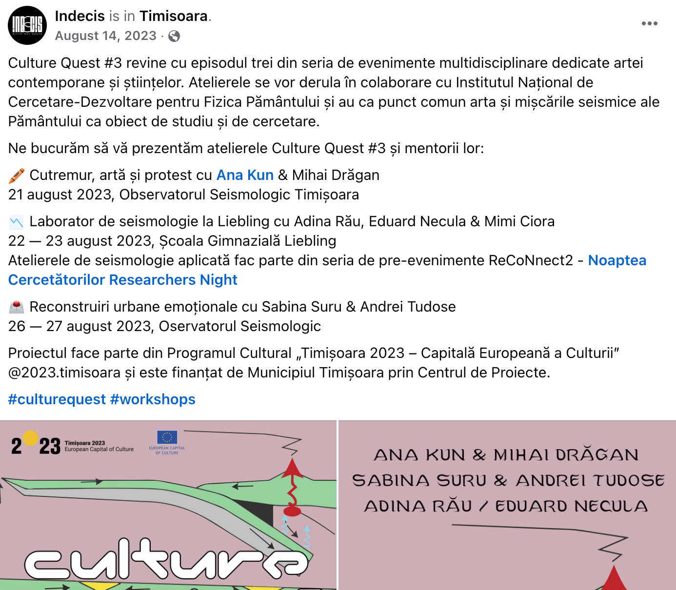 Earthquakes, Art, and Protest with Ana Kun & Mihai Drăgan, August 21, 2023, Timișoara Seismological Observatory – Photo: Mircea Ilcău