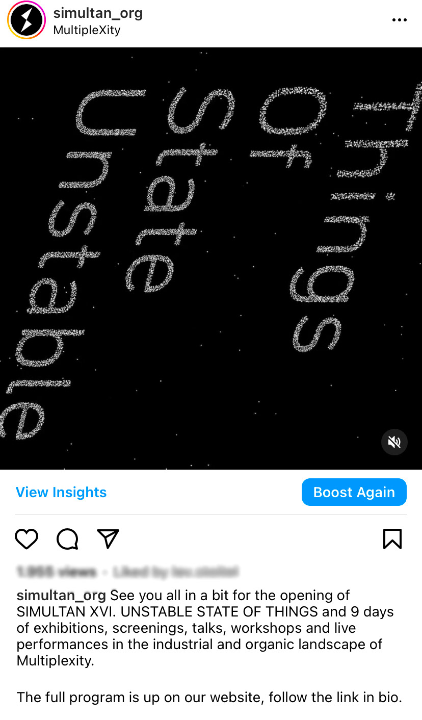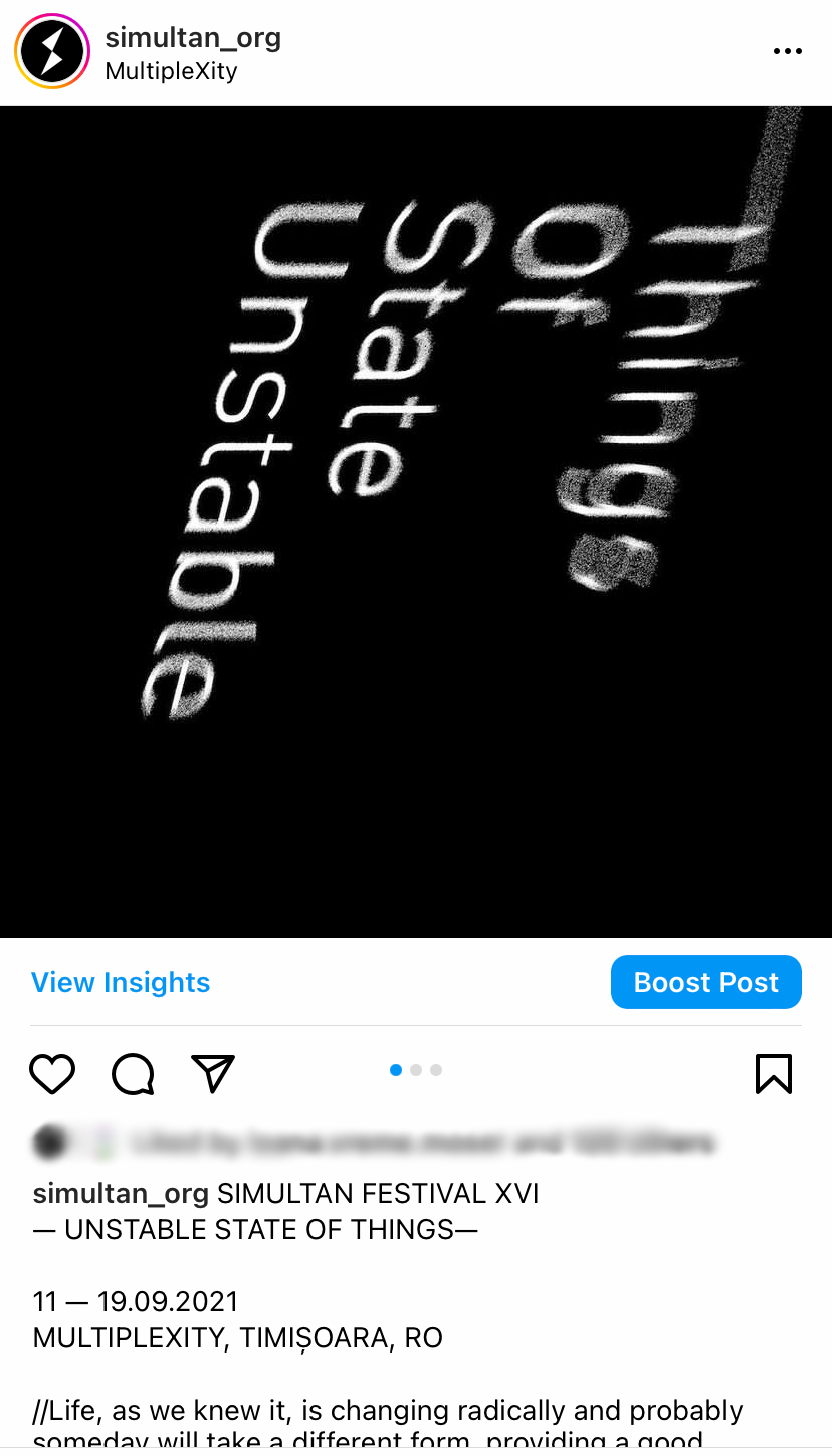 The 16th edition of the SIMULTAN Festival took place between September 11-19, 2021 under the motto Unstable State of Things.