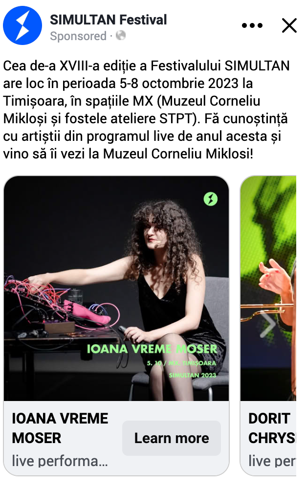 In 2023, I was in charge of communication for the 18th edition of Simultan Festival, titled OSCILLATIONS: Things to Remember, held between October 5–8 at MultipleXity, Timișoara. For the first time, the festival brought together two adjacent venues (the Corneliu Miklosi Museum and the former STPT workshops) into a unified space for contemporary art, sound, and experimental practices.